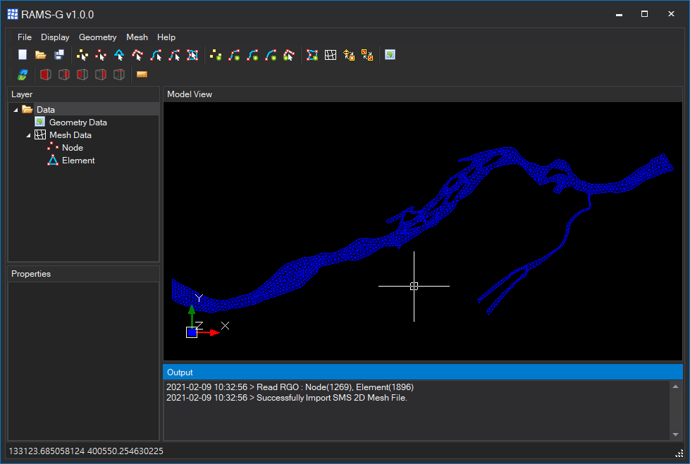 SMS에서 생성한 지형자료인 *.2dm 파일을 Import 한 이후엔 RAMS+ Geometry File(*.rgo) 형식과 동일하게 작동합니다.