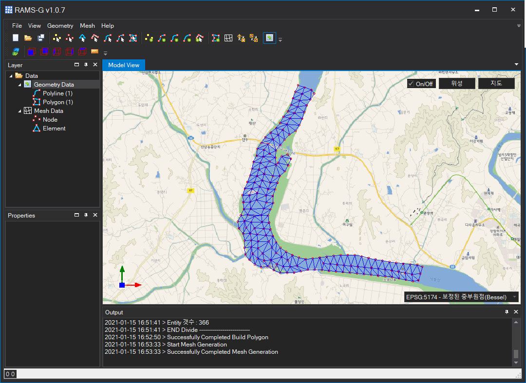 - 가져오기가 완료되면 화면에 HEC-RAS 지형이 표출됩니다.